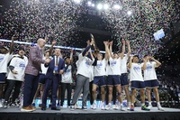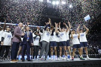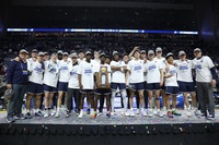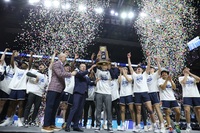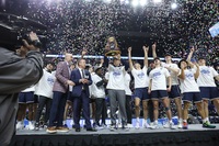 FORT WAYNE (03/17/2024) — In the team's first NCAA Tournament appearance, the Trine University men's basketball team ran the table and won the 2024 NCAA Division III National Championship with a 69-61 victory over Hampden-Sydney College. The victory came in front of a crowd of 4,546, a new record for the best attendance for an NCAA Division III Men's Basketball Championship game.