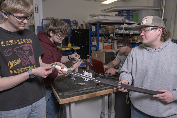 Taking the baton from last year's team, five Trine University mechanical engineering seniors renewed their partnership with Dexter Axle's Albion, Indiana, facility to complete a custom-built pallet squeezer-an industrial machine designed to realign heavy stacks of manufacturing pallets.