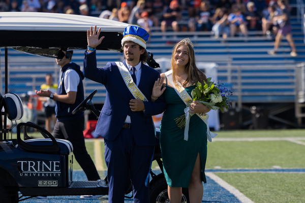 Trine University recognized its 2025 Homecoming court as well as its king and queen during the annual Thunderstruck Pep Rally in the MTI Center on Friday, Oct. 3.