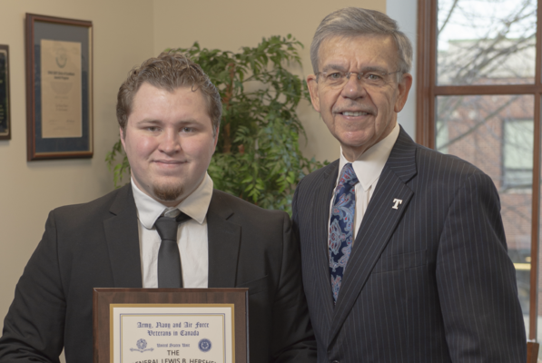 Tommy Feddeler, a Trine University junior from Wheatfield, Indiana, is the 2021-2022 recipient of the General Lewis B. Hershey Scholarship.