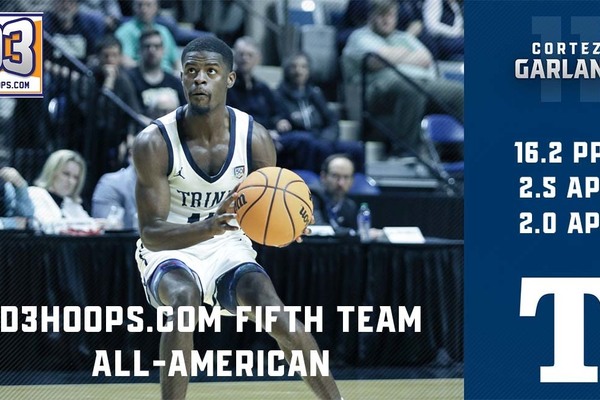 Senior guard Cortez Garland of the Trine University men's basketball team has been named Second Team All-Region by D3hoops.com ahead of Thursday's National Championship Semifinal game against Trinity College out of Connecticut.