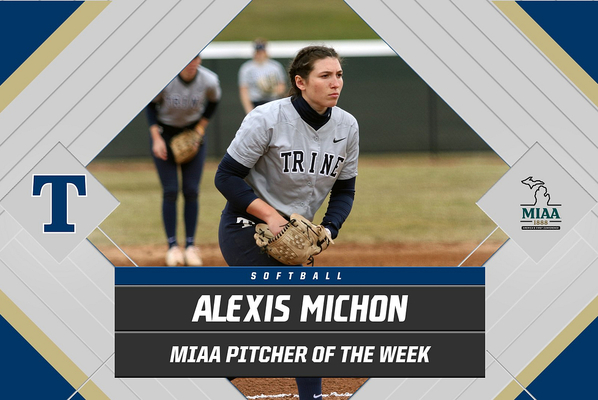 Junior Alexis Michon of the Trine University softball team has been named the Michigan Intercollegiate Athletic Association (MIAA) Softball Pitcher of the Week.