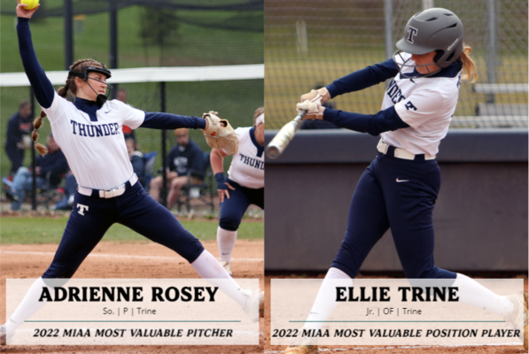 The Trine University softball team swept the final Michigan Intercollegiate Athletic Association (MIAA) Softball Athlete of the Week honors with sophomore Adrienne Rosey (Schoolcraft, Mich. / Schoolcraft) and junior Ellie Trine (Kokomo, Ind. / Kokomo) each taking home an award.