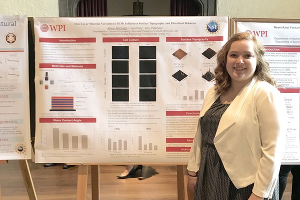 A Trine University biomedical engineering major completed a summer Research Experience for Undergraduates (REU) that gave her the opportunity to test materials to see if they might be used in implants or to help repair tissue.