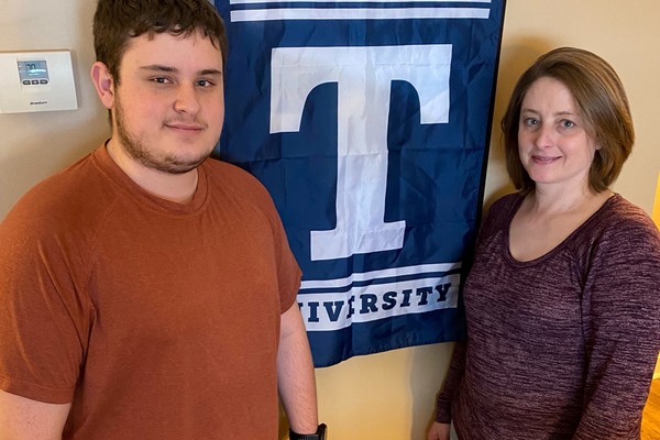 Jenna Anderson didn't expect that when she visited Trine University with her son RJ she would eventually become a student at the school herself. "Even though we live within a half-hour of Trine, I really knew nothing about it until we went for a college visit his junior year of high school," the Kendallville, Indiana, resident said. RJ is in his second year at Trine as a design engineering technology major, and Jenna recently started the Bachelor of Science in organizational leadership (BSOL) program through TrineOnline. From that initial visit, RJ said he was drawn to Trine by its small size and the quality of its engineering program. "To our delight, we discovered an amazing opportunity for him," Jenna said. A while after RJ started at Trine. Jenna was promoted to a leadership role at the Kendallville Public Library. She holds an associate degree in broadcasting and decided it was time to look for opportunities to complete a bachelor's degree. "I have been taking informal leadership training for several years, but finally decided it was not too late to go back to school," she said. "Once I found out that a couple of my 'local heroes' have degrees in organizational leadership, it sealed the deal." She said she didn't initially think about Trine as a possibility until TrineOnline's BSOL degree program came up in an online search. "I thought about Trine primarily as an engineering and teaching school; I didn't think about there being an online degree in organizational leadership," she said. "These days, it's tough to tell which online schools are trustworthy, but because I knew Trine, I felt comfortable attending online." "Through my experience with the college, RJ's professors and his advisors, I have really developed a trust and an admiration with the university. Once I found out that Trine has an online organizational leadership degree, it was not hard to make a decision on where I would apply." "I was happy when my mom told me she was attending Trine," RJ said. "She knows how much I like Trine and she decided to attend herself." RJ was able to give Jenna some early pointers on using Trine platforms like the myPortal and Moodle systems. "I walked her though the basic functions and just let her explore," he said. "It allowed me to jump right into the class, because I was already familiar with the format," Jenna said. "It was a big help in getting started!" Jenna said at this point she is only able to take one class at a time, so it's unlikely she will march across the platform in Trine's 2023 Commencement with RJ. But she intends to finish no matter how long it takes. "I will appreciate RJ's help when I have to take College Algebra," she said. Jenna hopes the BSOL degree will help her gain the leadership skills to be a "coach" rather than a "manager." "I hope this degree will help me move even further in that direction, and open up career opportunities in the future," she said. "I am happy where I am at. However, if life changes, a degree will certainly be a help in launching a new career."