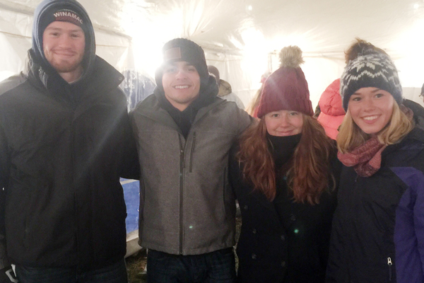 A team of four students represented Trine University at the Angola Area Chamber of Commerce's annual Corporate Toboggan Speed Challenge.