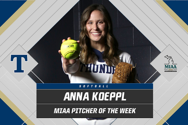 Senior Anna Koeppl of the Trine University softball team has been named Michigan Intercollegiate Athletic Association (MIAA) Softball Pitcher of the Week for the Monday, March 13 iteration of the award.