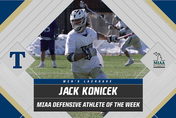 Senior Jack Konicek has been named this week's Michigan Intercollegiate Athletic Association (MIAA) Men's Lacrosse Defensive Athlete of the Week following an outstanding week in the faceoff circle.