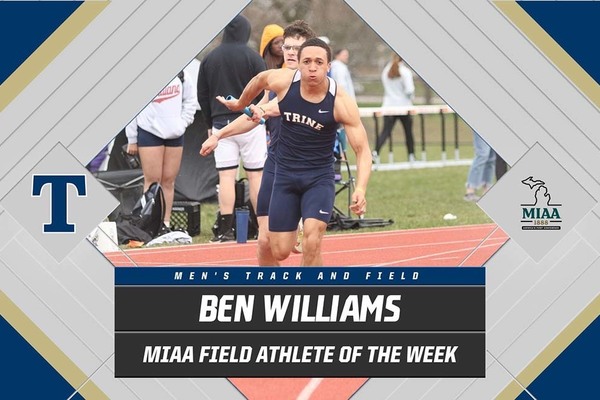 Ben Williams of the Trine University men's track and field team was named Michigan Intercollegiate Athletic Association (MIAA) Field Athlete of the Week. It is the first time in Williams' career being named MIAA Athlete of the Week.