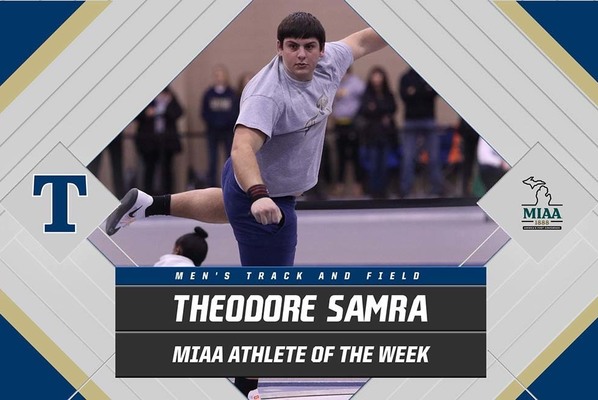 Theodore Samra of the Trine University men's track and field team has been honored as the Michigan Intercollegiate Athletic Association (MIAA) Men's Field Athlete of the Week for the second time this season and sixth time in his career.