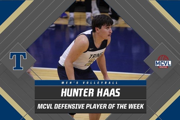 The Midwest Collegiate Volleyball League (MCVL) has announced junior defensive specialist and libero Hunter Haas as the conference's Defensive Player of the Week. It is the fifth time in Haas' career that he has been selected for the award.