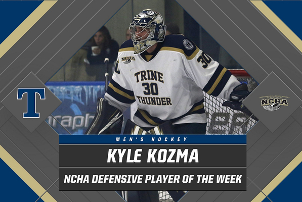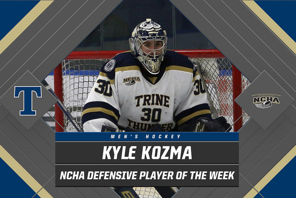 Freshman Kyle Kozma has been named this week's Northern Collegiate Hockey Association (NCHA) Defensive Player of the Week after anchoring the defense in the team's crucial sweep of Lake Forest College.