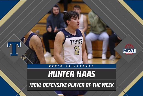 For the second time on the 2023 season, Hunter Haas of the Trine men's volleyball team was named Midwest Collegiate Volleyball League (MCVL) Defensive Player of the Week.