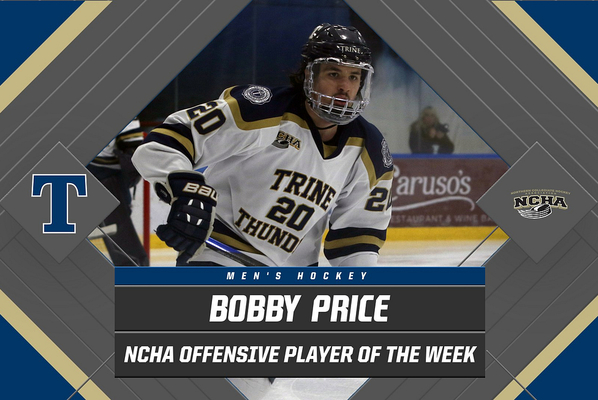 Sophomore Bobby Price has been named this week's Northern Collegiate Hockey Association (NCHA) Offensive Player of the Week after leading the team to a four-point weekend against nationally-ranked Adrian College. Price finished the weekend with a team high five points including one goal and four assists.