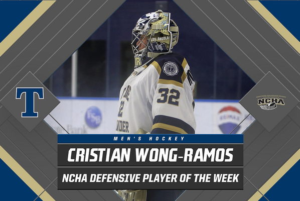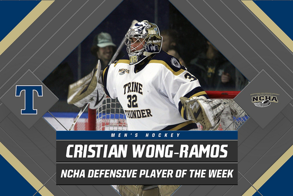 Sophomore Cristian Wong-Ramos has been named this week's Northern Collegiate Hockey Association (NCHA) Defensive Player of the Week after presiding over a sweep of Marian (Wis.) University by the Trine University men's hockey team this past weekend.