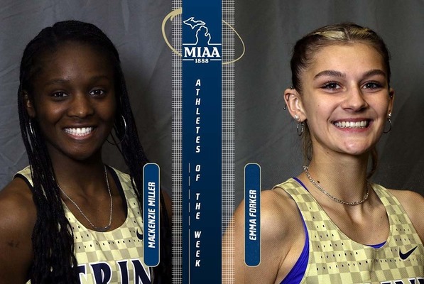 A pair of underclassmen in sophomore Mackenzie Miller and freshman Emma Forker were named Michigan Intercollegiate Athletic Association (MIAA) Women's Track and Field Athletes of the Week after competing at the Indiana Tech Strive for Greatness Invitational last weekend.