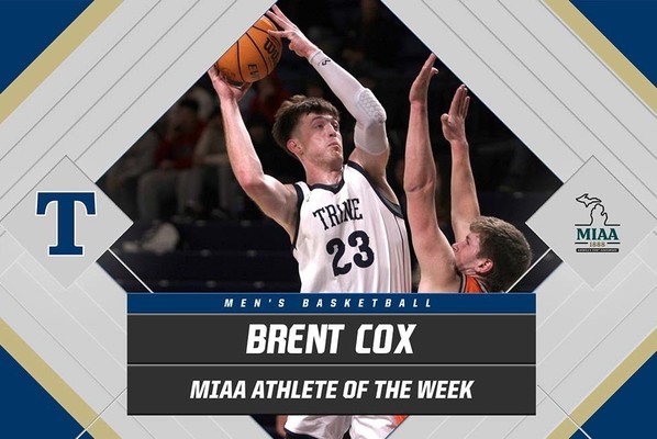 Senior forward Brent Cox of the Trine University men's basketball team has been tabbed Michigan Intercollegiate Athletic Association (MIAA) Athlete of the Week after leading the team in scoring in back-to-back road games, including an upset win over D3hoops.com #3 team, the University of Wisconsin-La Crosse. It is his third time winning the award in his four-year career.