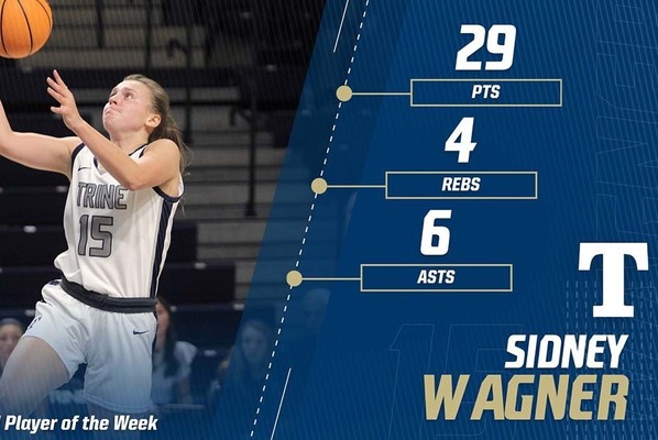 Sophomore guard Sidney Wagner of the Trine University women's basketball team has been named United States Basketball Writers Association (USBWA) Division III National Player of the Week. It is the first time a Trine women's basketball player has been selected by the USBWA as the National Player of the Week.