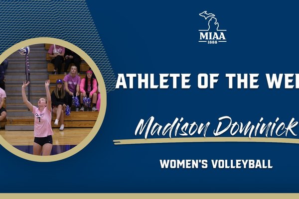 The Michigan Intercollegiate Athletic Association announced Madison Dominick as the Volleyball Player of the Week. Dominick led the Thunder to a 3-0 record last week behind 36 kills, 3 service aces and 4 blocks. Dominick sent home 10 kills in a three set victory over Manchester on Wednesday. She had 13 kills in both matches on Saturday, adding a block and an ace against DePauw and a pair of blocks and aces against Marian (Wisc.