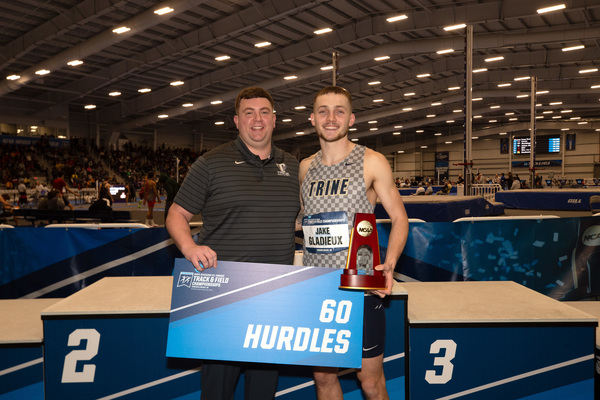 Jake Gladieux of the Trine University men's track and field program secured his second national championship of his career by taking first-place in the 60-meter hurdle finals on Saturday. Gladieux would add an All-American award with a sixth-place finish in the 200-meter dash event as well.